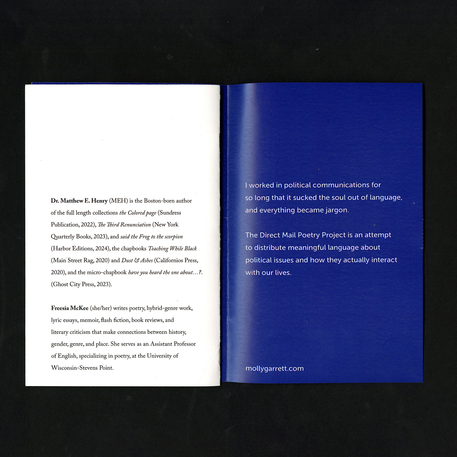I worked in political communications for so long that it sucked the soul out of language, and it felt like everything became jargon. The Direct Mail Poetry Project is an attempt to distribute meaningful language about political issues and how they actually interact with our lives.