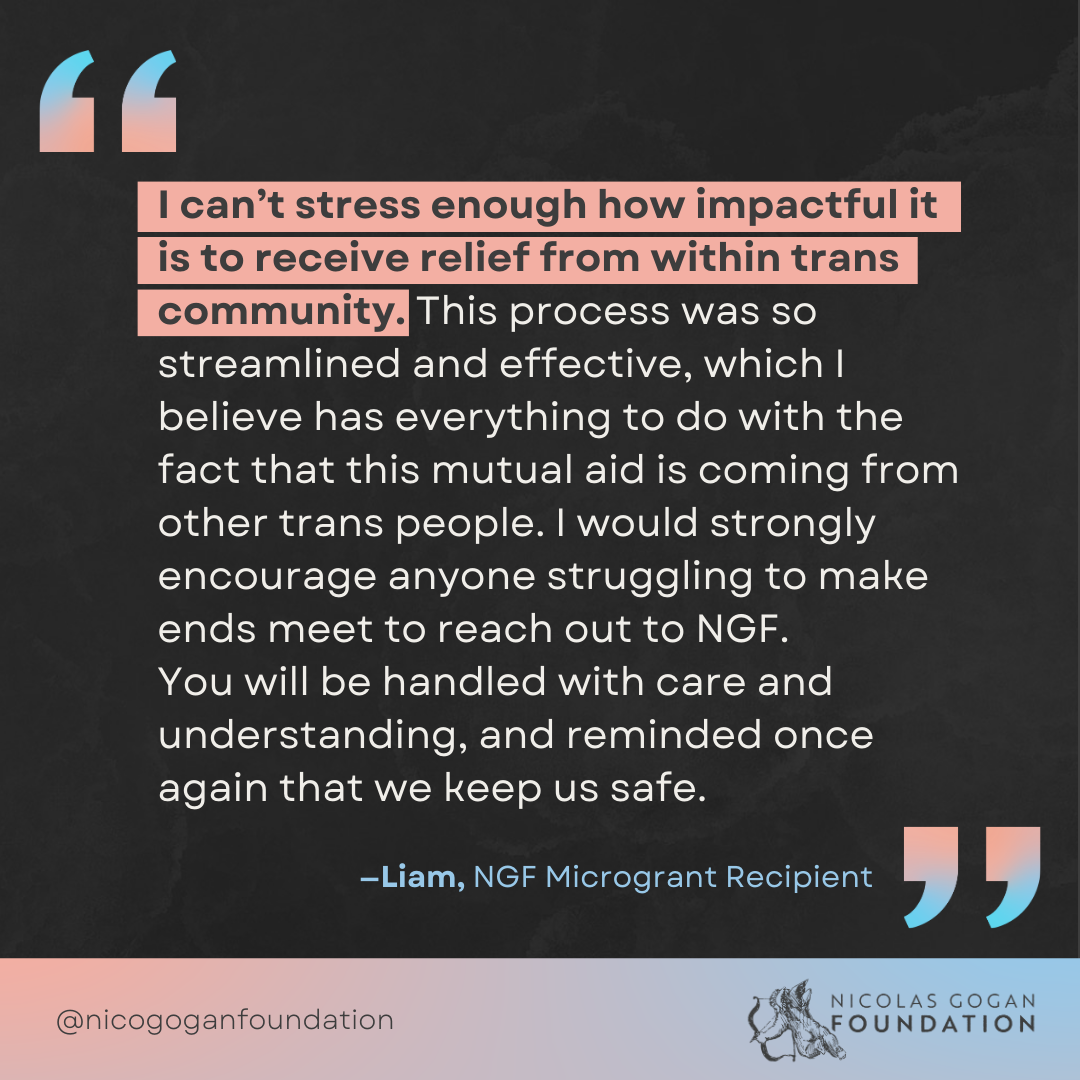 I am the graphic designer for the Nicolas Gogan Foundation, a mutual aid fund dedicated to the care & support of our trans+ community members. This is a selection of the social media graphics I’ve created for them.
